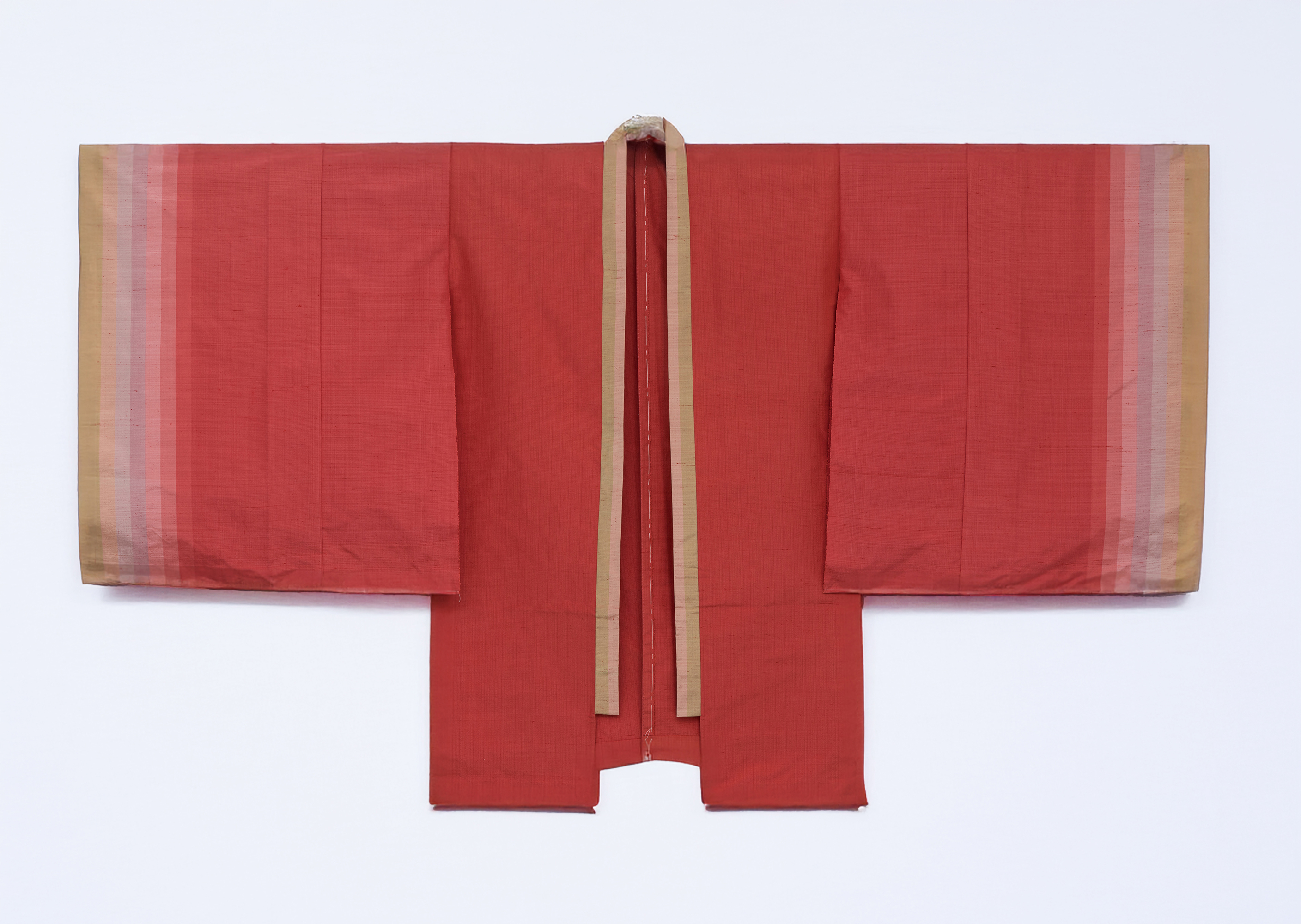 舞衣《紅扇》 2021年 志村ふくみ監修 制作 都機工房 絹糸/紅花、藍、刈安、臭木、紫根 【前期展示】