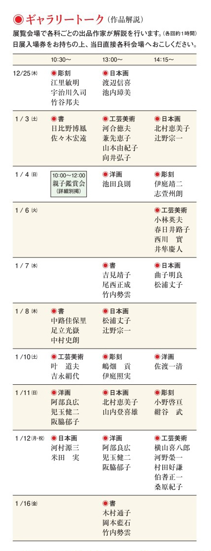 ◉視覚障害者のための「手で触れる日展」※要事前申し込み ◉親子鑑賞会※要事前申し込み 先着20組 ◉ギャラリートーク(作品解説) ※作家別作品解説の日程についてはこちらをご覧ください。