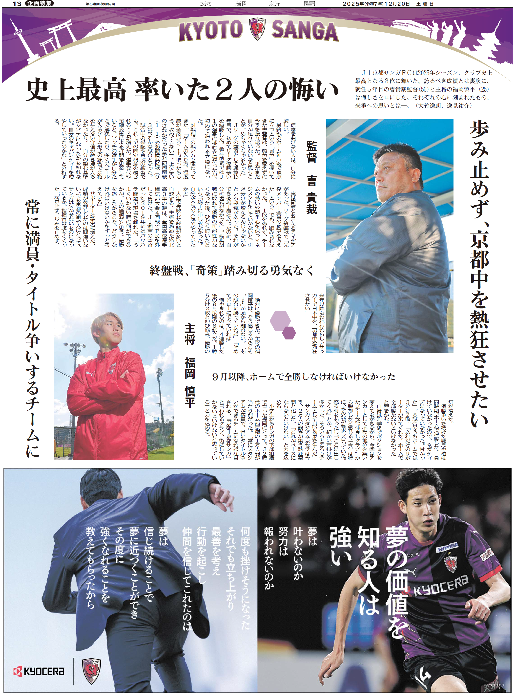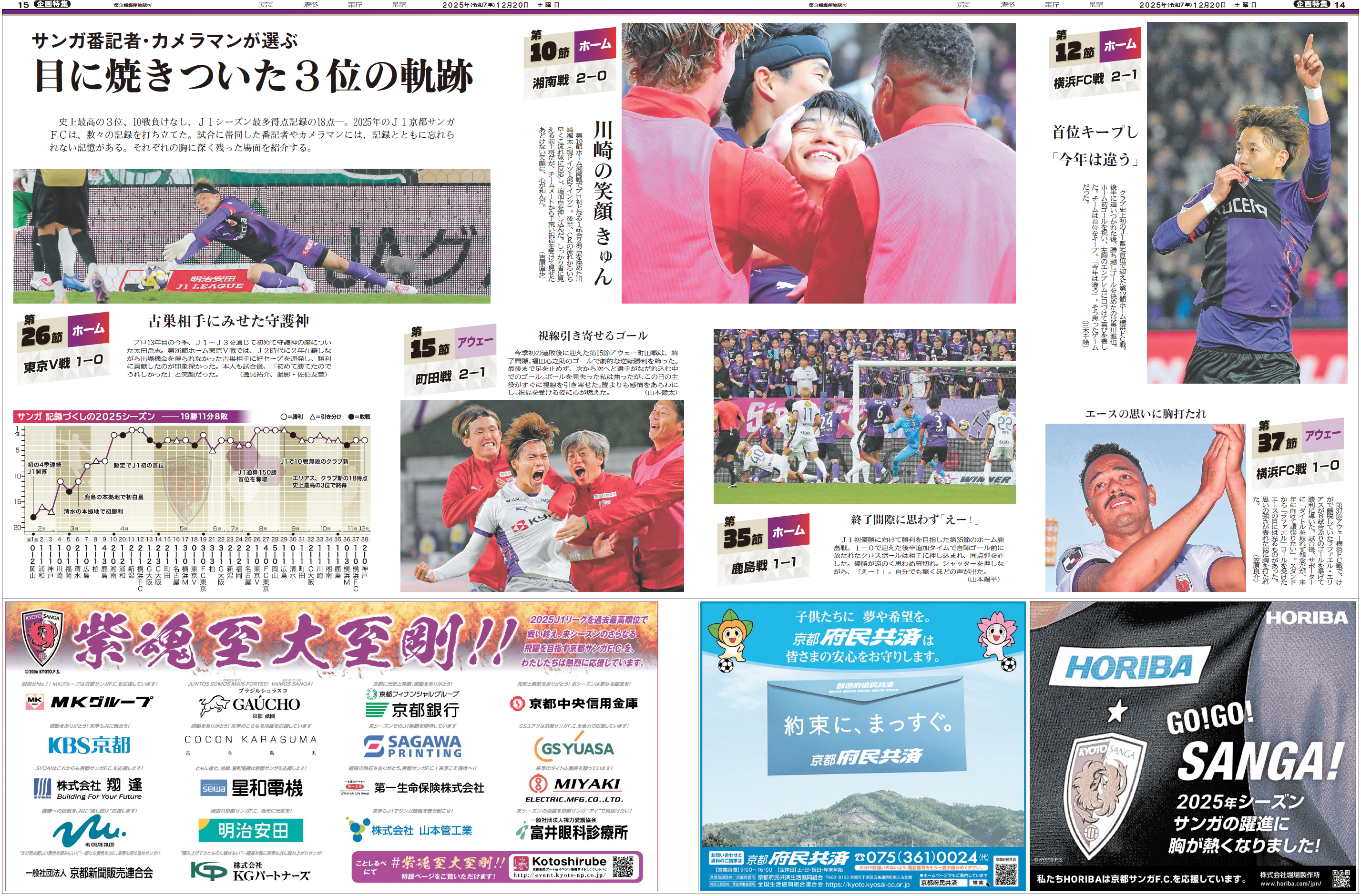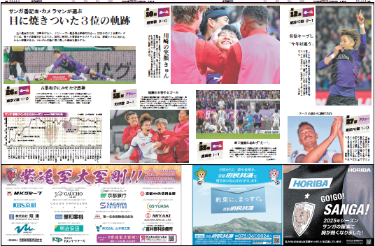 京都新聞では、12月20日(土)付朝刊で京都サンガF.C.の2025シーズンを振り返る特集紙面を掲載しました。