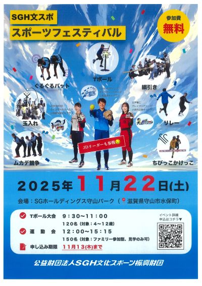 公益財団法人SGH文化スポーツ振興財団(所在地:滋賀県守山市)が開催する、ファミリー参加型イベント「SGH文スポ スポーツフェスティバル」を紹介します。