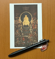ポストカード(釈迦十六善神像)、仏教壁画チャーム付きインクペン