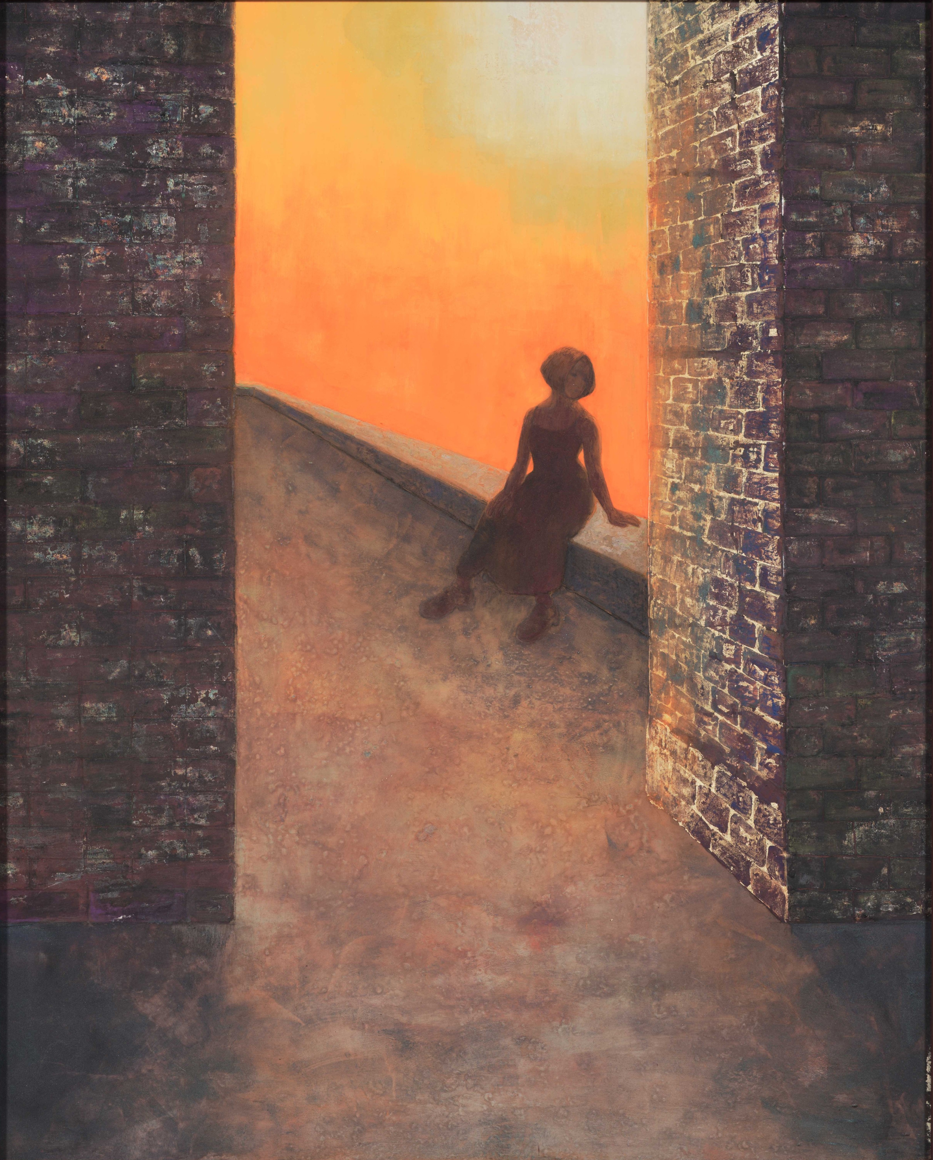 夢にでてきた1シーンです。夕方、名張の住宅街のある丘に、不思議な廃墟街をみつけました。孤児たち以外ほとんど人がみられない中、門の向こうに黒いワンピースを着た女性が、ぽつんと座っている佇まいが、強く印象に残っています。