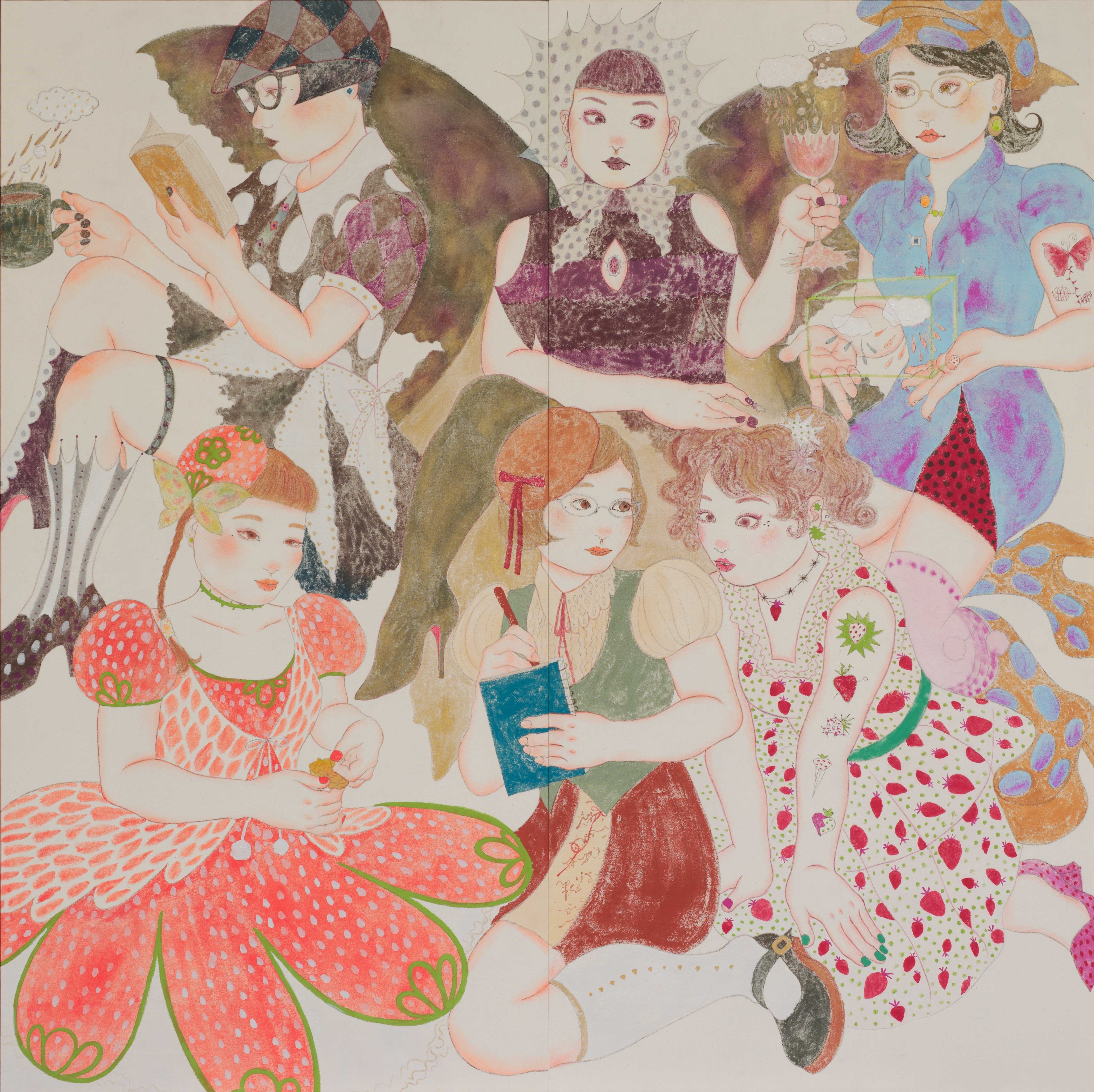 外見から内面を判断される違和感や面白さを表そうと思い、容姿とその内面に潜む色々なキャラクターをテーマに自画像を描きました。