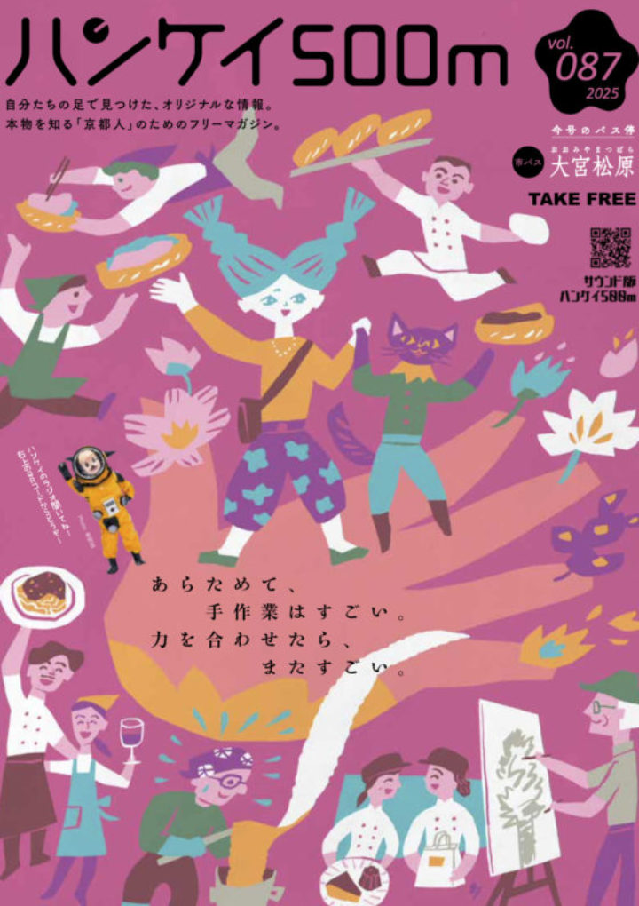 内容 京都のバス停を起点に半径500mを探索し、新たな目線で京都を掲載するフリーマガジン「ハンケイ500m」。取材から見える京都の街・人の魅力を紹介。